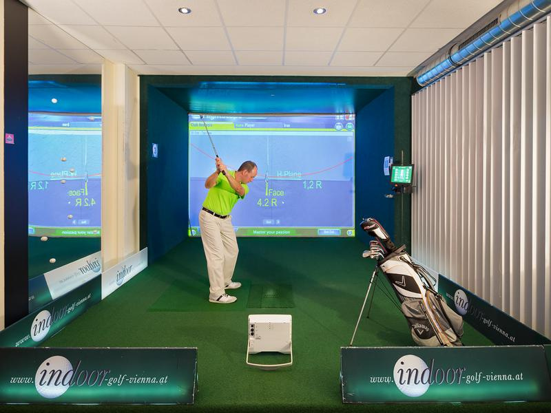Nach einer Stärkung in der Wiener Innenstadt (mit der leihbaren Hotel-Vespa ist man in 10 Min dort) haben wir uns noch Indoor-Golf-Anlage angeschaut und ein paar Bälle abgeschlagen. Als ungeübter Golfer kann ich mir vorstellen, dass es für einen Profi sicher eine tolle Sache ist, beispielsweise im Zuge eines Geschäftsaufenthalts in Wien an seiner Technik zu feilen.