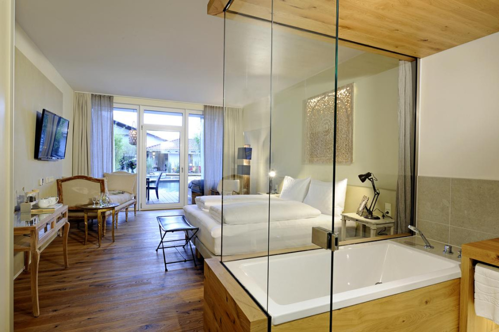 Auf der Suche nach Entspannung und einer geeigneten Energiequelle zum "Auftanken" wurde unserem Sportherz-Team das DAY SPA des WELLNESSGARTEN im bayerischen WAGING AM SEE empfohlen. Gerade einmal etwas mehr als eine halbe Stunde von Salzburg entfernt entpuppte sich die Empfehlung als wahrer Geheim-Tipp. Nach herzlicher Begrüßung an der Rezeption, wurden wir vom Hausherren und 6-fachen Weltmeister der Ski-Tennis-Kombination SEPP BAUMGARTNER durch die Anlage geführt. Das Hotel lädt schon im Empfangsbereich mit einer Tee-Ecke und gesunden Naschereien zum Entspannen. Die 15 überaus geschmackvoll eingerichteten Zimmer sind der ideale Ort für einen erholsamen, romantischen Aufenthalt und bieten darüber hinaus genügend Platz für Sport-Ausrüstung. Die 3 Garten-Zimmer im Erdgeschoß verfügen sogar über eigene Terrassen mit direktem Zugang zum Schwimmteich! Schnell fällt die Liebe zum Detail ins Auge. Überall findet man noble Möbelstücke und Accessoires – die Handschrift der Chefin HILDEGARD BAUMGARTNER. Sie betreibt eine eigene Boutique für Dekorationen und Wohnaccessoires direkt im Hotel.