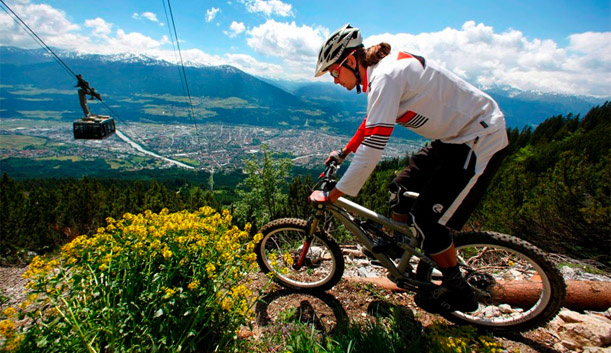 Wer auf steiles und alpines Gelände steht, findet mit dem Nordkette Singletrail seine richtige Herausforderung. Auf dem Weg nach unten in die Tiroler Landeshauptstadt warten neben einigen engen Steilstellen und spitzen Kehren auch Holzhindernisse und Sprünge, die bewältigt werden wollen. Kein Wunder, dass die auf Extrembefahrungen spezialisierten Vertrider hier ihre Heimat haben.